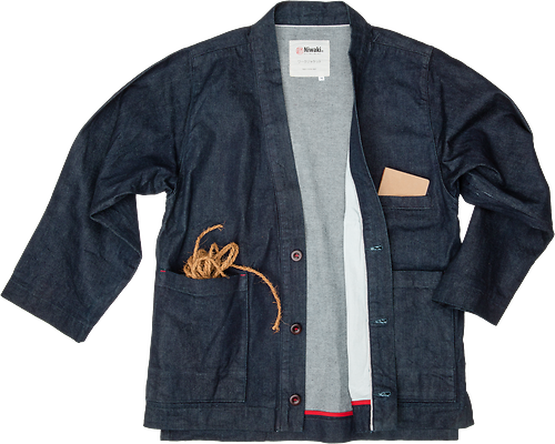 日本のデニムの中心地である児島で、(枝垂れ柳で有名な倉敷の近くです) ハンドメイドされた限定版。12ozのインディゴセルビッジデニムに2%のストレッチを加えています。京都の裏道を歩く時でも、Niwakiのはしごの上でも活躍します。