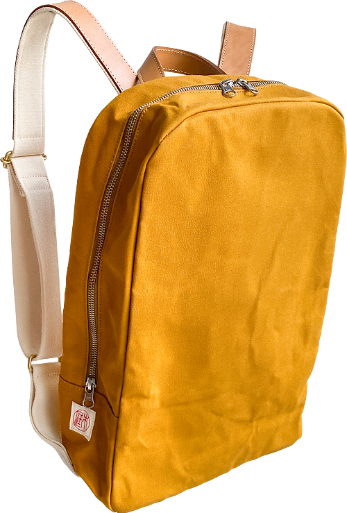 バッグデザイナー出身のご夫婦が提案するライフスタイルブランド、NIZYU KANOとのコラボレーションによるコンパクトなリュックサック。15オンスのパラフィンコーティングを施した倉敷帆布を使用。