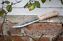除草や植え付けに大人気のツールです。カミソリのように鋭いステンレススチールのナイフ刃で、片刃は根っこやその他もろもろを切り込むためにノコギリ状になっています。グリップにはずんぐりとしたビーチウッド。