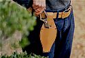 少し変わった形のこのホルスターは、しなやかな厚さ3mmのレザー、糸、真鍮のリベットで一つ一つ手作業で作られています。こんなにもシンプルな形ですが、驚くほど多くの試作を重ね、名前の通り、壺をはじめひょうたんやカブ、球根などの植物のあのカーブを参考にようやくこれ!という絶妙なラインを見つけました。